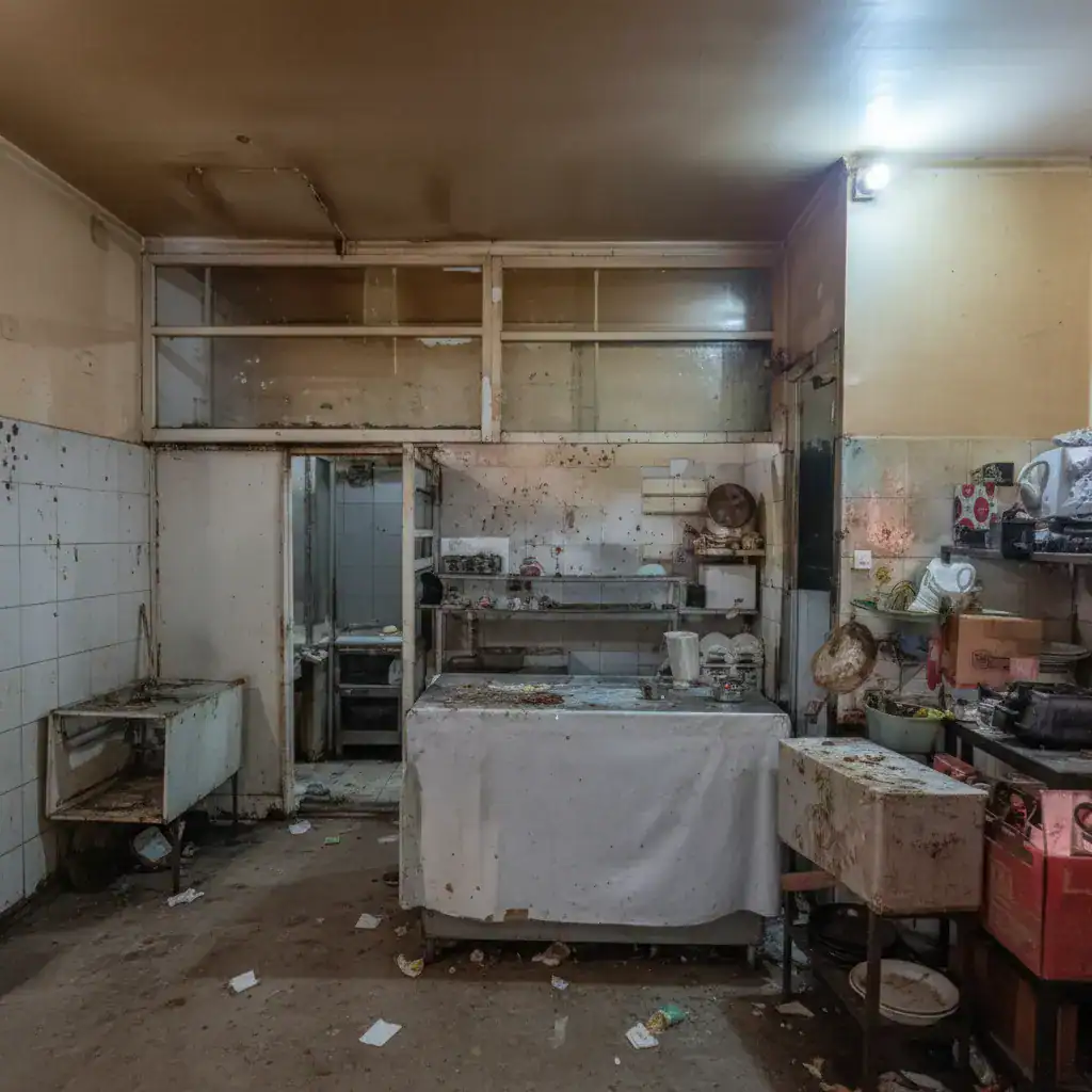 - The ceiling was not kept in good repair, failing to prevent the accumulation of dirt and the possibility of particles falling onto food preparation areas.